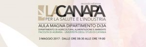 Mercoledì 03 Maggio 2017, dalle ore 08.30 alle ore 19.00 presso l’Aula Magna del Dipartimento di Agricoltura, Alimentazione e Ambiente, avrà luogo il convegno, organizzato dal Prof. Vincenzo Perciavalle, dal Prof. Salvatore Luciano Cosentino e dall’Associazione Archè, in collaborazione con Kanèsis, dal titolo: “La Canapa per la Salute e l’Industria – Seconda Edizione”.