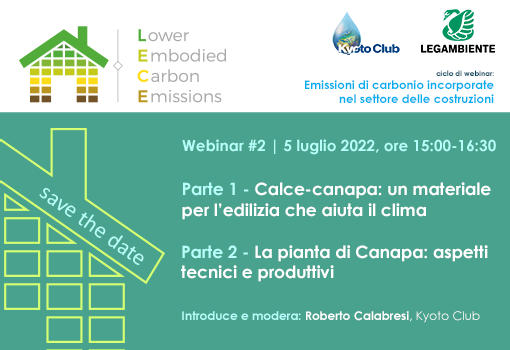 l progetto di Kyoto Club e Legambiente della durata di un anno (7 gennaio 2022 – 6 gennaio 2023) ha l’obiettivo di informare e sensibilizzare sul tema delle emissioni di carbonio incorporate del settore edile italiano (Embodied carbon emissions in the Italian building sectors).