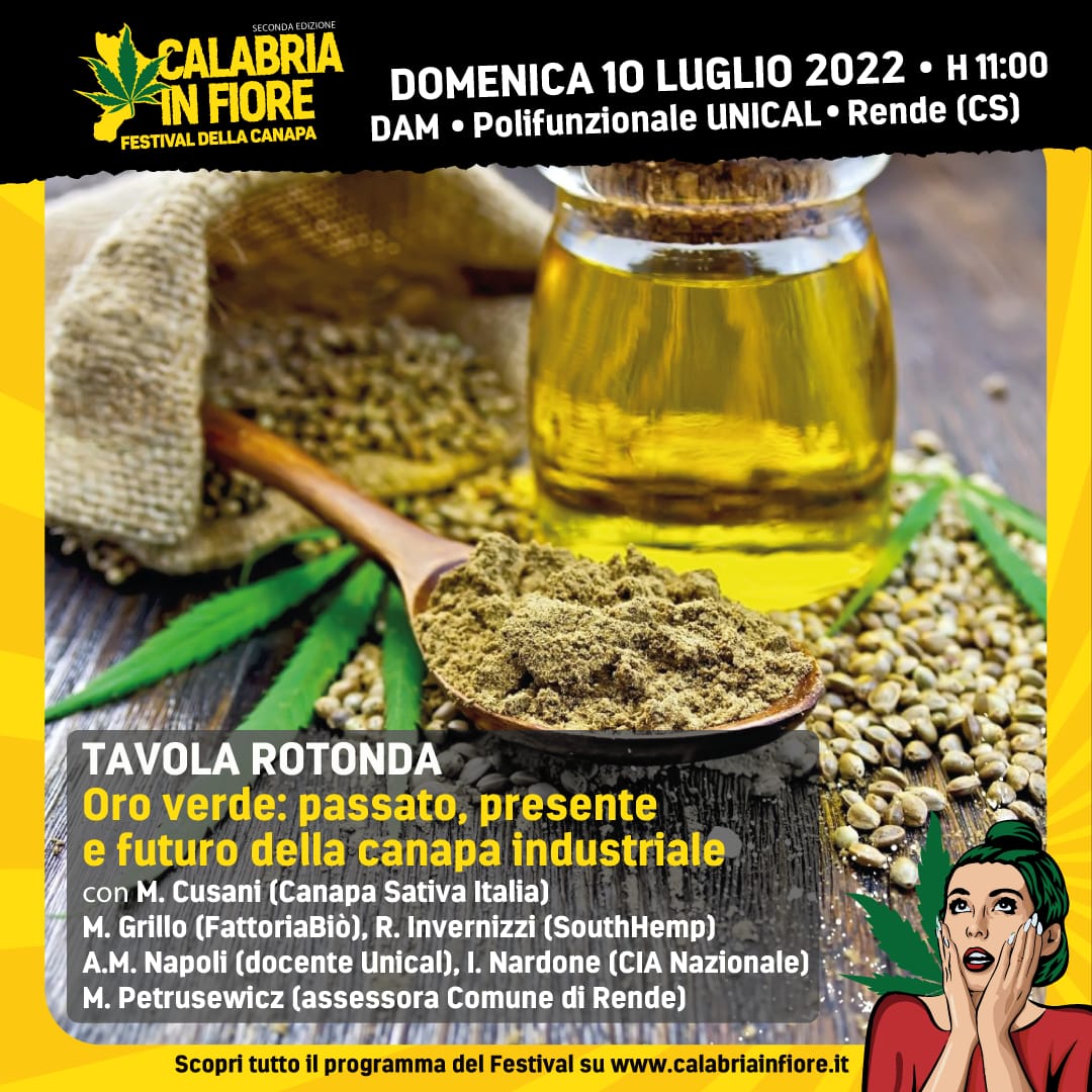 Domenica 10 luglio – Tavola rotonda “Oro verde: Passato, presente e futuro della canapa industriale” con Rachele Invernizzi – Vice-Presidente di Federcanapa.