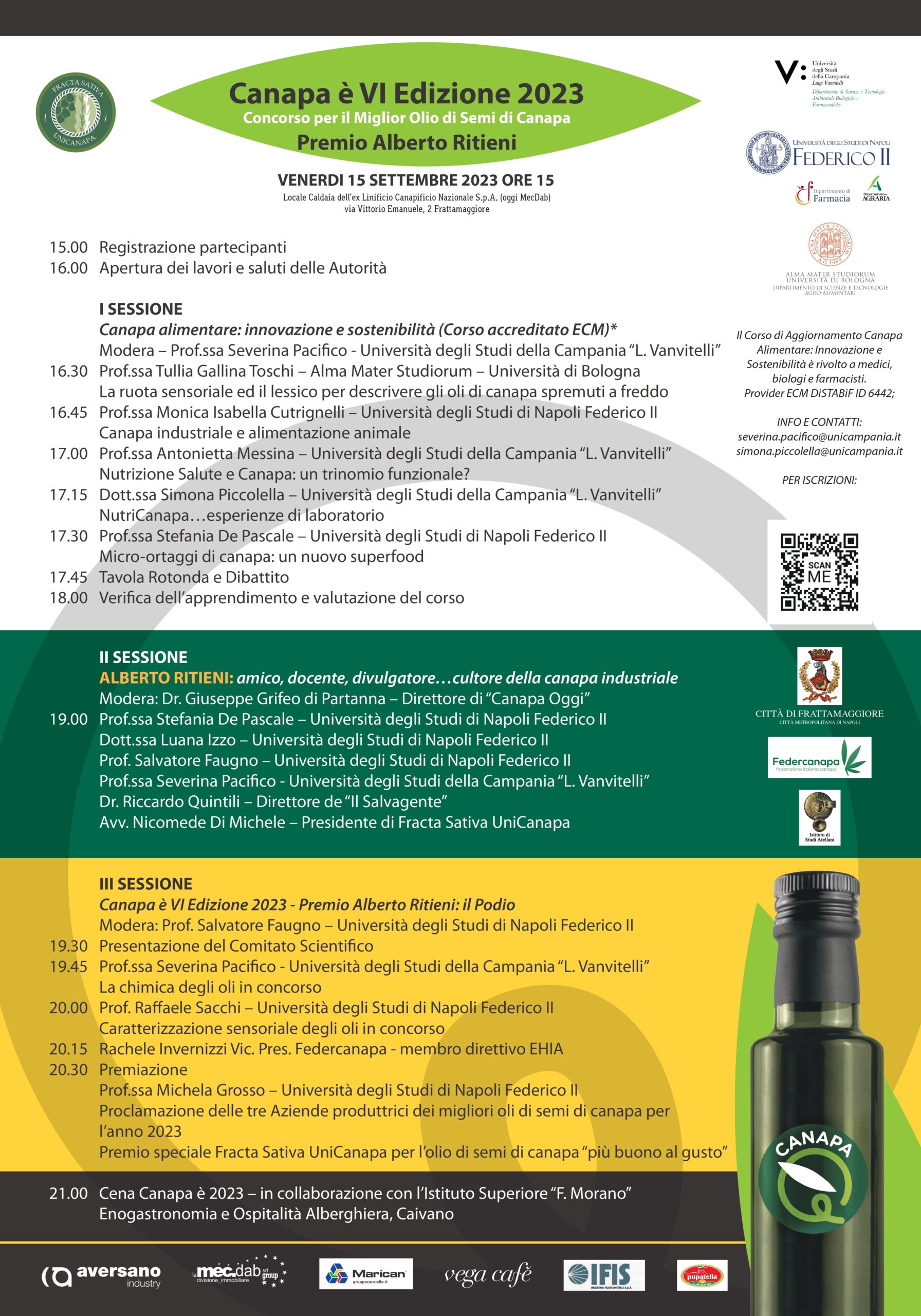 Il premio “Canapa è” quest’anno viene dedicato ad Alberto Ritieni, Prof. di Chimica degli alimenti del Dipartimento dell’Università di Federico II di Napoli e membro del Comitato Tecnico Scientifico di Federcanapa, in virtù della prematura scomparsa pochi mesi fa e del suo interesse e dedizione nel campo della ricerca della canapa alimentare.