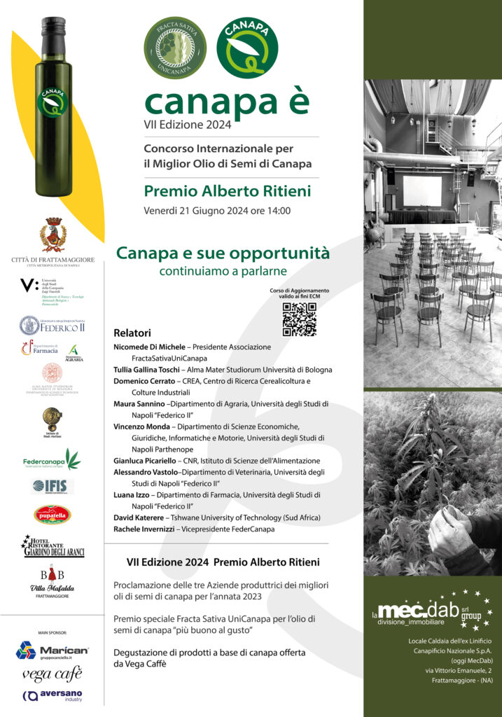 VII EDIZIONE MIGLIOR OLIO DI SEMI DI CANAPA ” CANAPAE’ ” 202410 Aprile 2024 in Bacheca / Eventi / News di Federcanapa REGOLAMENTO CONCORSO MIGLIOR OLIO DI SEMI DI CANAPA SCHEDA ADESIONE CONCORSO MIGLIOR OLIO DI SEMI DI CANAPA VII ED.