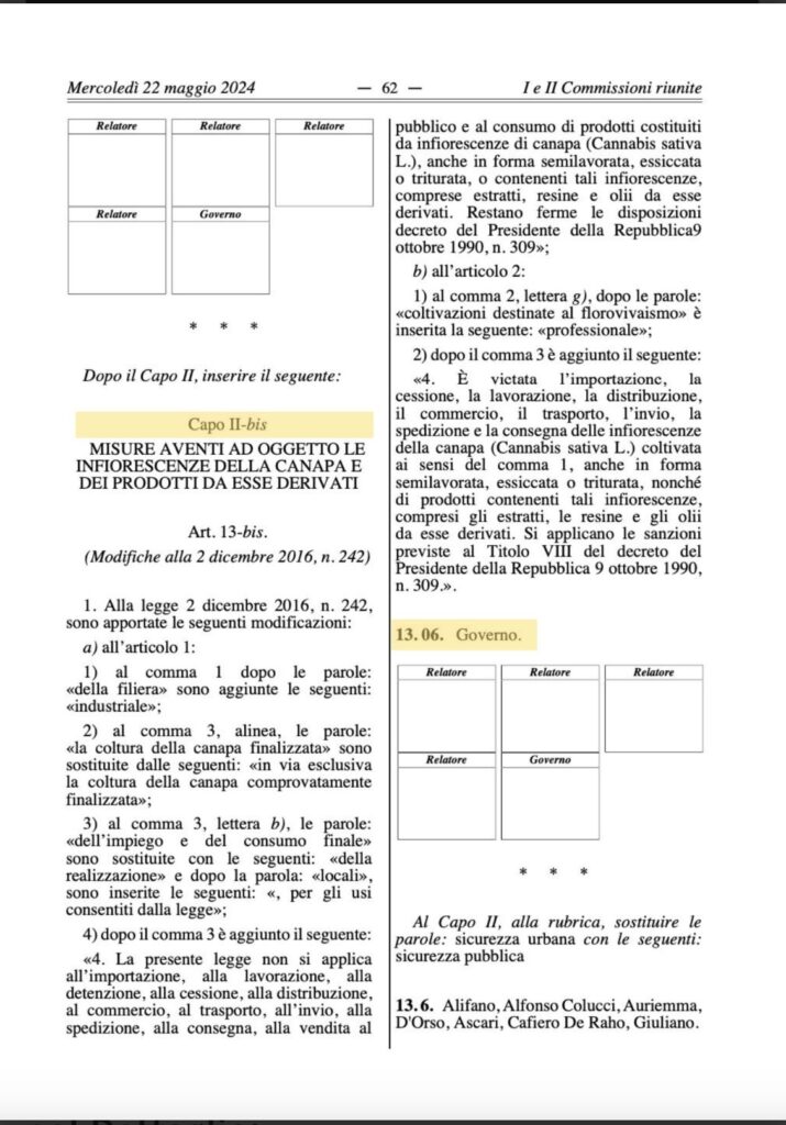 Come successo in Precedenza, Il governo riprova una nuova stretta sul settore canapicolo Italiano.