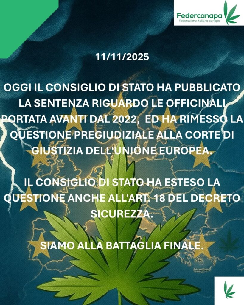 L’ordinanza del Consiglio di Stato rappresenta un momento fondamentale per il settore canapa in quanto ha analizzato tutte le criticità emerse nel settore dall’entrata in vigore della Legge 242/2016. In particolare ha ritenuto che l’attuale formazione della normativa italiana, sia della 242 come riformata dall’art. 18 del Decreto Sicurezza, sia della normativa sugli stupefacenti di cui al DPR 309/1990 presenti forti dubbi di compatibilità con il diritto europeo. Il che è quello che sosteniamo da anni, ossia che non si può applicare indiscriminatamente la normativa sugli stupefacenti a fiori, foglie, oli e resine di canapa a prescindere dal fatto che provengano da varietà certificate ed a prescindere dal rispetto dei limiti di THC di legge. Credo che il giudizio dinanzi alla Corte di Giustizia rappresenterà un momento fondamentale per tutta Europa per chiarire in maniera definitiva la piena legalità della pianta intera di canapa, senza distinzioni tra parti della pianta. Ed oltre a questo anche un’occasione per rivedere la normativa sugli stupefacenti che con riferimento alla cannabis sativa è oramai anacronistica