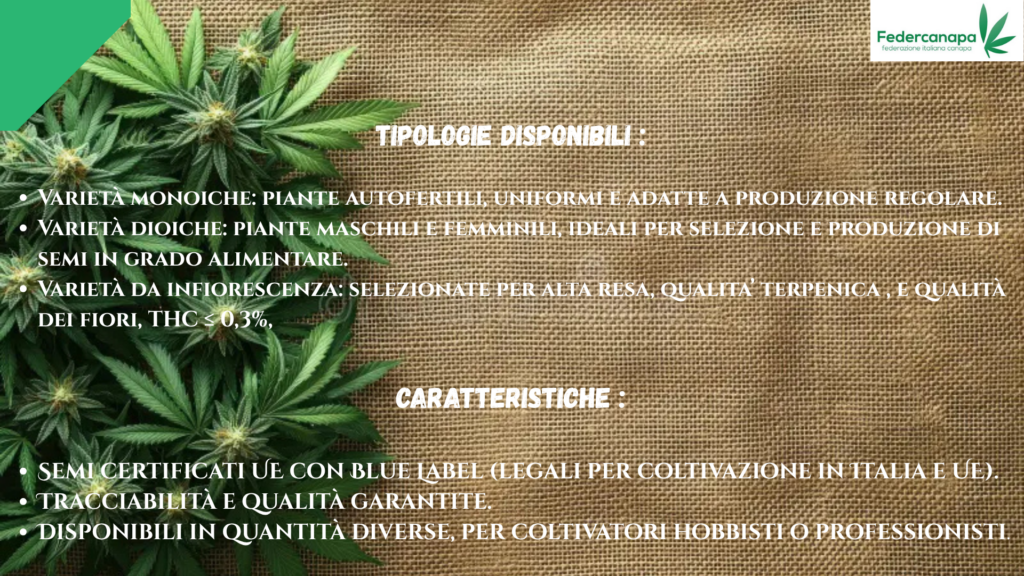 Semi di Canapa da riproduzione – Stagione Agricola 2026