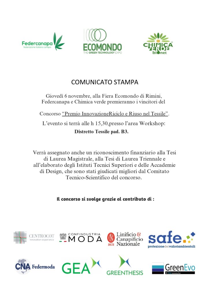 Giunti alla loro seconda edizione, i Concorsi sono promossi da Chimica Verde, Federcanapa ed Ecomondo, con il sostegno di Centrocot, CNA Federmoda, Confindustria Moda, Safe, Gea Greenthesis, Linificio Canapificio Nazionale, Next Technology e Green Evolution.