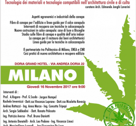 LA CANAPA IN EDILIZIA, un prodotto antico per un futuro migliore. giovedì 16 NOVEMBRE 2017 ore 9:00 DORIA GRAND HOTEL, via Andrea Doria 2, Milano 7 Cfp per architetti. Dati i posti limitati, pre-registrazione immediata. Scarica il programma in PDF Vai a questo link per la […]